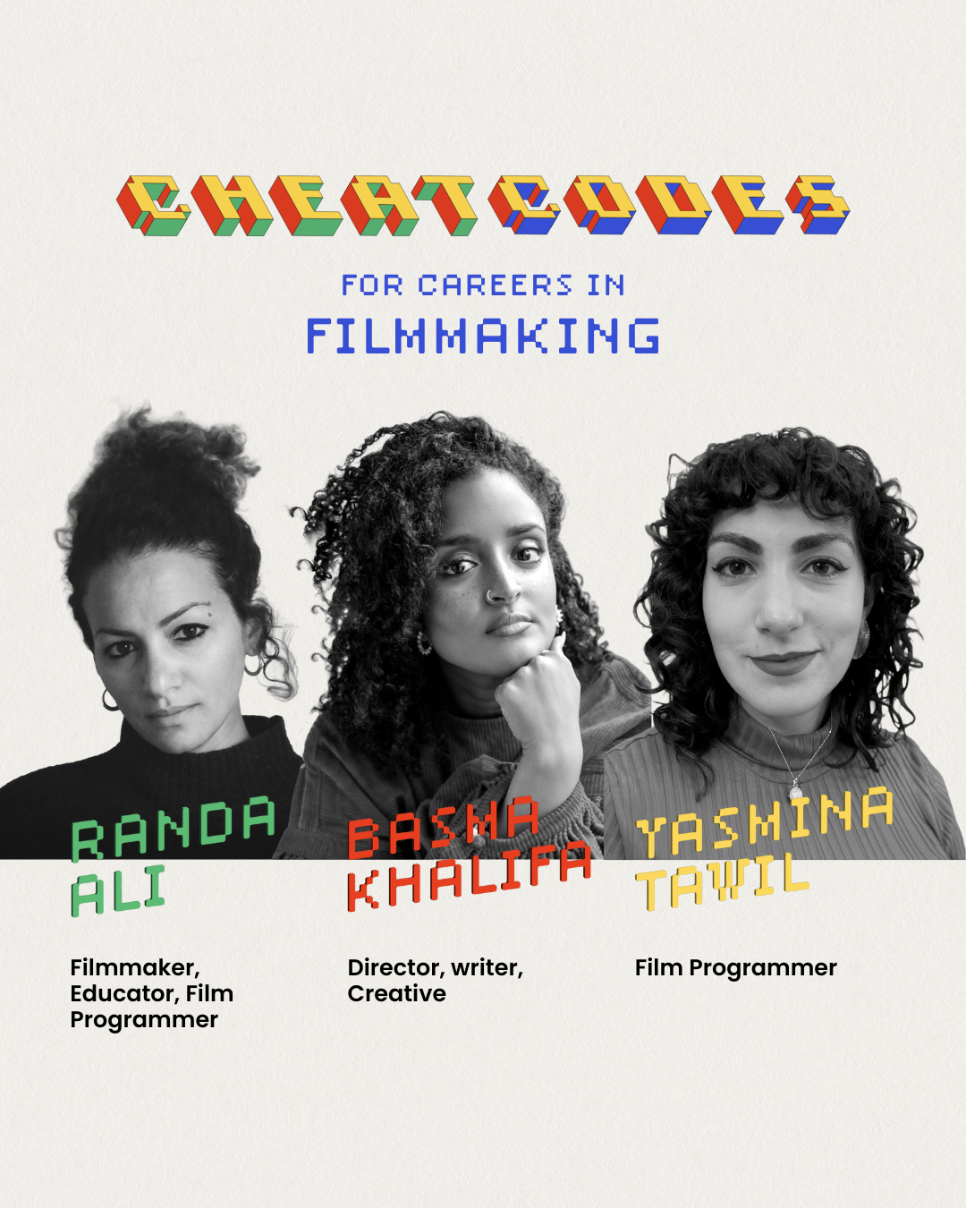 Yasmina Tawil is a Brooklyn-based film programmer and curator with a speciality in Arab cinema. She is currently a Film Programmer at BAM (Brooklyn Academy of Music) and the curator of the Cinema Arabiyya series at Nitehawk Cinema. She was previously the Director of Film Programming at the Arab Film and Media Institute and also worked for the independent film distribution company Oscilloscope Laboratories. She holds a Bachelor's degree in Film and Television from Boston University.